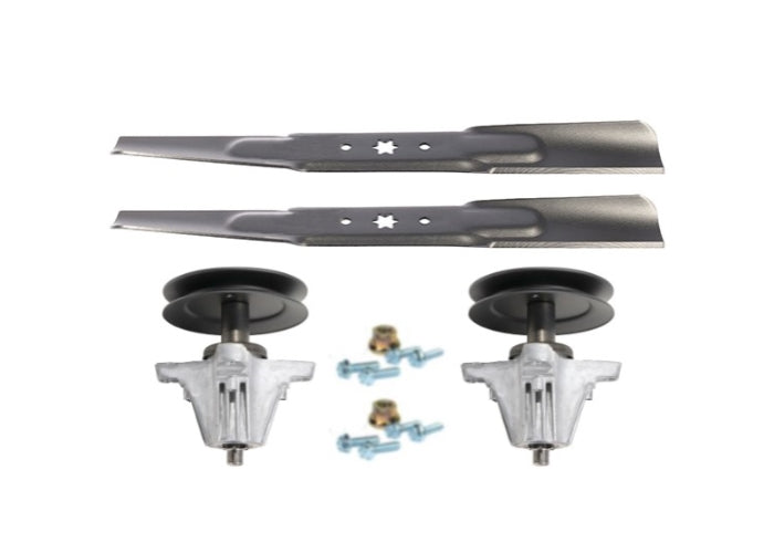 (2) 23-1/4" 6 Point Star Center Blades - Replaces Craftsman 942-04244, 942-04244A, 942-04290, 942-04290A(2) Spindle Assemblies with Hardware - Replaces Craftsman 918-06977, 918-06977A